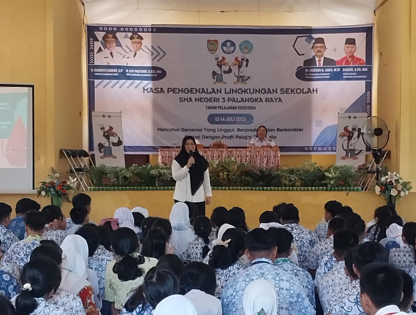Jadi Narsum MPLS SMAN 3 Palangka Raya, Kadispursip Nunu Andriani Ajak Peserta Rajin Ke Perpustakaan